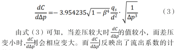 式(2)中:C一流出系數(shù);β一直徑比;/=d/D;qs一標(biāo)準(zhǔn)流量值;d一節(jié)流件的孔徑;ρ1一水的密度;△p-測量差壓值。
