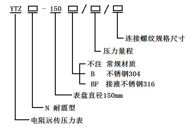壓力量程:0~0.1;0~0.16;0~0.25;0~0.4;0~0.6;0~1;0~1.6;0~2.5;0~4;0~6;0~10;0~16;0~25;0~40;0~60;0~100